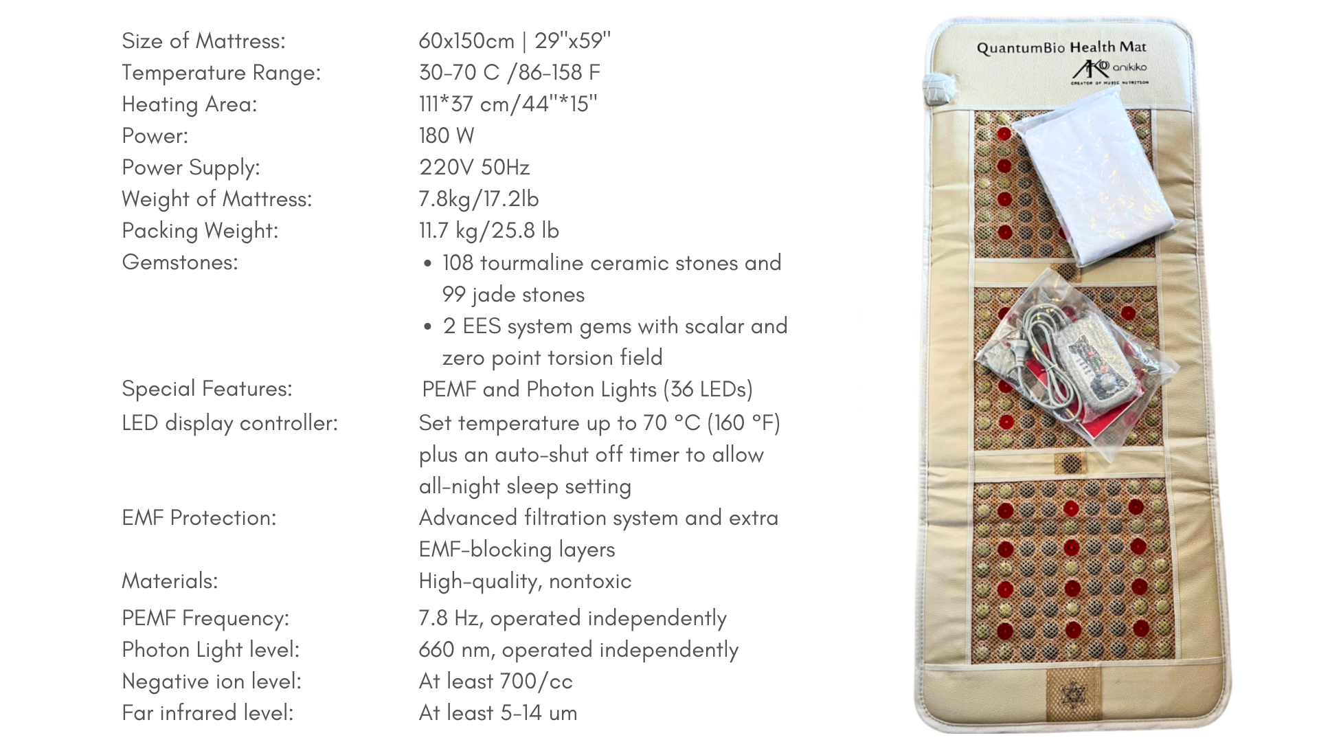 Not only that, but it’s also packed with healing gemstones! With 108 tourmaline stones, 99 jade stones, and 2 EESystem gems, the Quantum BioHealth Mat takes energy healing to another level, amplifying the body's natural ability to recharge and restore.