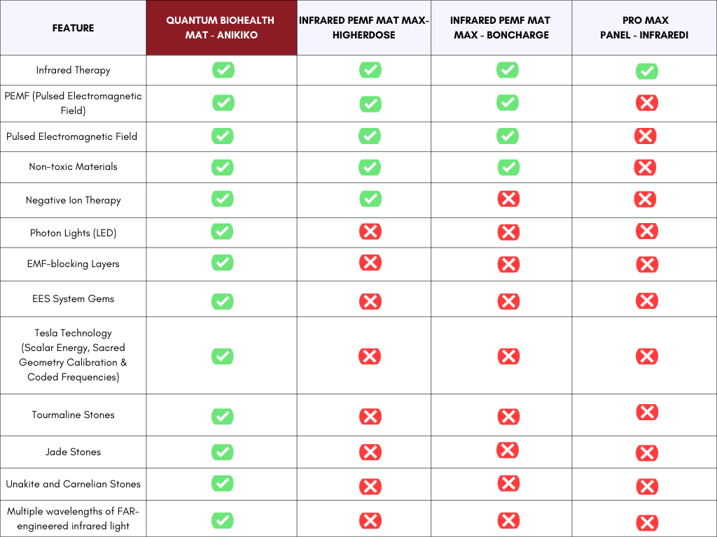 This is simple research, meant only to highlight the Quantum BioHealth Mat's unique features.